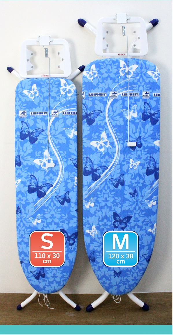 Considerably lighter than conventional ironing boards and fitted with a unique ironing surface – the Leifheit Air Board S Basic. Its special cover with Thermo Reflect technology reflects steam and heat from the iron, instead of letting it evaporate through the ironing surface. Thanks to the two-sided ironing effect, the laundry is ironed on both sides at the same time. Setting up and putting away the Air Board S Basic is simple with the ironing surface that’s made with an ultra-light special plastic. This makes the Air Board S Basic lighter than any other conventional expanded metal ironing board. The 110 x 30 cm ironing surface rests on a completely stable frame which can, in addition, stabilise on uneven floors. Height-adjustable, the board can be raised to a maximum working height of 88 cm. The ironing board is equipped with a fixed iron rest. Thermo Reflect Technology makes this ironing board ideal for using with standard irons and steam irons. Leifheit recommends its Air Board Express range of ironing boards for use with steam generator irons.